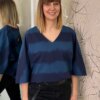 Ez a rövid ujjú, V-kivágású felső laza, mégis karakteres darab a mindennapokra.