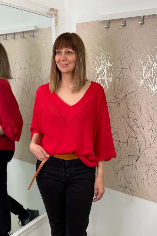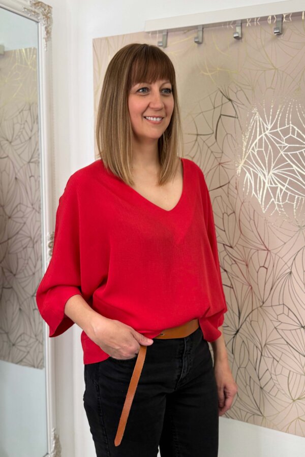 Ez a laza szabású, V-nyakú felső letisztult, mégis karakteres darab.