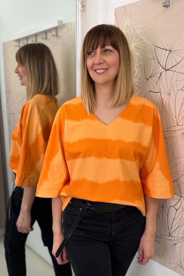 Ez a rövid ujjú, V-kivágású felső laza, mégis karakteres darab a mindennapokra.