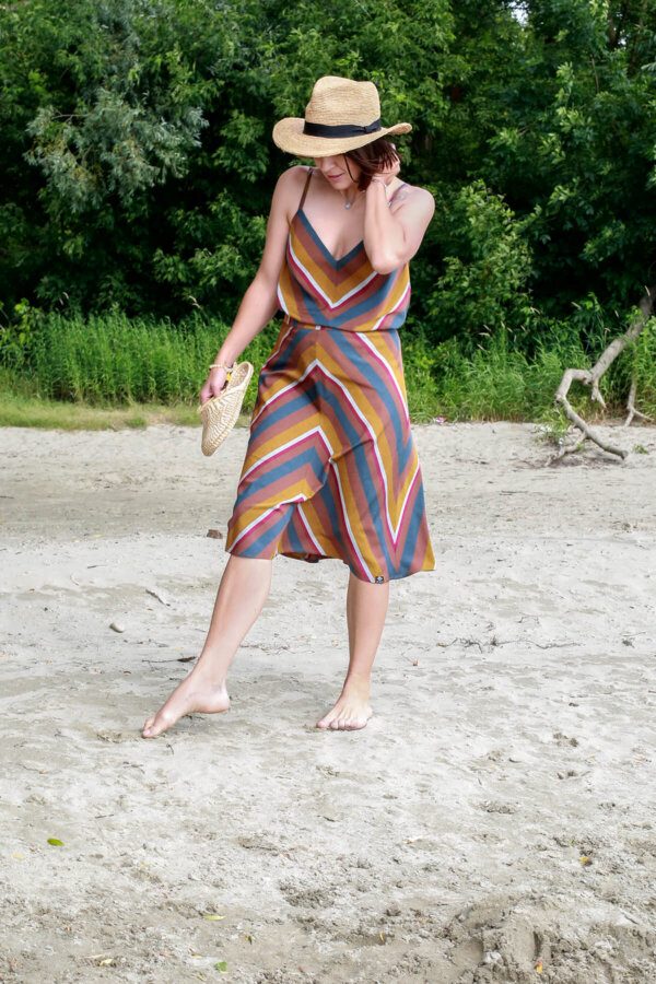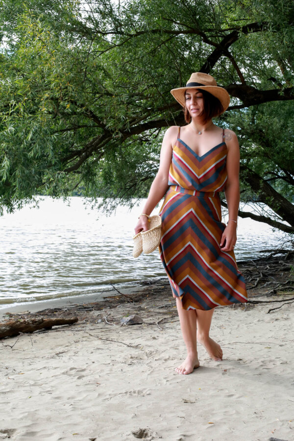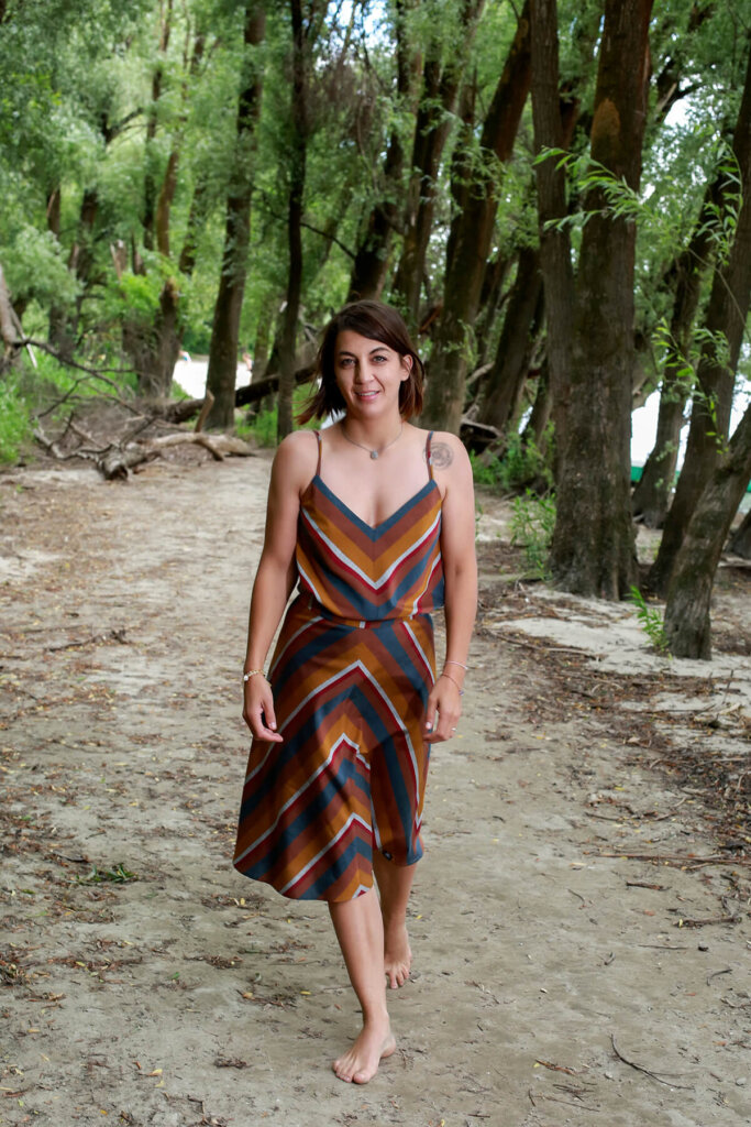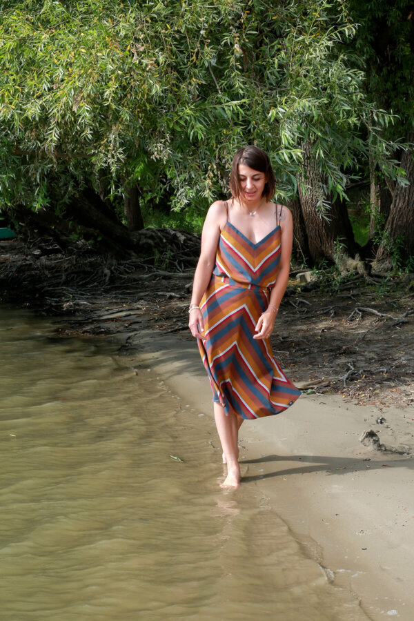 A vékony pántok légies hatást adnak, a lágy esésű anyag pedig szépen követi a test vonalát anélkül, hogy rátapadna. Könnyed, nyári darab, ami önmagában is megállja a helyét, de rétegezve is jól működik.